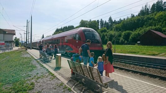 Railjet-Halt am alten Bahnhof am Wallersee 2019.