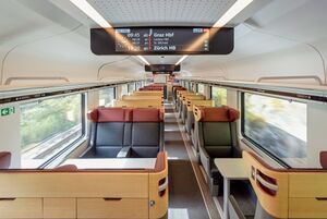 Neu entwickelte mobilfunkdurchlässige Fensterscheiben verbessern die Netzfunktion und bringen damit stabileren Handy-Empfang auf den Strecken. Eine spezielle Ambientebeleuchtung mit tageszeitangepasster Lichtsteuerung sorgt für eine angenehme Fahrt, während das moderne Fahrgastinformationssystem mit aktuellen Reiseinformationen up-to-date hält. Wer sich die Zeit bis zur Ankunft online vertreiben möchte, kann mit gratis WLAN im ÖBB Railnet surfen, streamen und das digitale Zeitungs- und Zeitschriftenangebot kostenlos nutzen. Eine Klimaautomatik im Fahrgastraum sorgt für angenehme Temperaturen, während eine verbesserte Laufruhe des Zugs selbst bei der Maximalgeschwindigkeit von 230 km/h für ein entspanntes Fahrerlebnis sorgt.