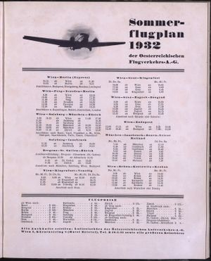 Am 9. April 1933 feiert die Österreichische Luftverkehrs-A.-G. das Jubiläum ihres zehnjährigen Bestandes. Die Gesamtleistung betrug insgesamt 4,300.000 km, was zirka der elfmaligen Entfernung des Mondes von der Erde entspricht. In diesen zehn Jahren wurden 19 363 Flüge durchgeführt und 48 500 Fluggäste, 488 000 kg Reisegepäck, 405 000 kg Fracht und 66 000 kg Post befördert. Infolge technischer Verbesserungen an den Flugzeugen sowie durch Ausbau der Bodenorganisation (Funk- und Wetter Wetterdienst) konnte auch die Regelmäßigkeit des Verkehrs von 91 % auf 97 % erhöht und sämtliche Flüge mit hundertprozentiger Sicherheit durchgeführt werden.