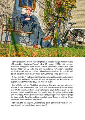 Im letzten Kapitel lässt er auf über 70 Seiten die Ereignisse und Beiträge Jahr für Jahr, Monat für Monat Revue passieren. Viele Bilder und weiterführende Internetlinks lassen hier ein Jahrzehnt Neumarkter Geschichte wach werden.
