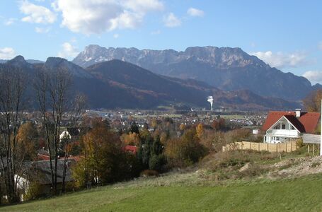 Blick ins Salzachtal vom Adneter Riedl aus, mit den Barmsteinen, Hoher Götschen und Untersberg