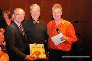 "Von Falco bis James Last – Frühlingskonzert 2012 Akkordeon-Orchester Hallein". Von links: Robert Ramsauer, neben ihm der musikalische Leiter und Dirigent Prof. Alois Breitfuß, der seit 1. Oktober 2011 im Ruhestand ist, rechts Kulturstadträtin Eveline Sampl-Schiestl und Bürgermeister Dr. Christian Stöckl.