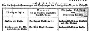 - ↑ "Medicinisch-chirurgische Zeitung", 25. Februar 1802, "Intelligenzblatt von Salzburg" 1802, 13. Februar 1802, 109-110.