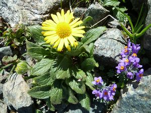 Die blauviolette Blütenfarbe des Alpen-Leinkrautes mit den innen gelben Rachenblüten stellt einen schönen Kontrast zum Grau der pflanzenarmen Schutthalden dar. Die Pflanze gehört zu den sog. Schuttüberkriechern, denn ihre beblätterten Triebe liegen auf dem Schutt. In Flusstälern wird das Alpen-Leinkraut oft weit nach unten geschwemmt.