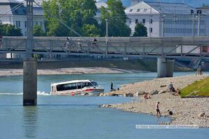 Der Amphibienbus ist ein Mittelding aus Schiff und Bus, der auf Straßen in der Stadt Salzburg und in der Salzach unterwegs sein wird. In London (England) und in den USA gibt es sie schon lang, Hamburg (Deutschland) hat seit 2016 auch einen.