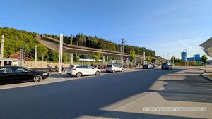 2017 wurde die erste große Park+Ride-Anlage eröffnet, der 2019 durch einen 500 m südlich gelegenen zweiten kleineren Parkplatz während der Umbauarbeiten erweitert wurde. Nach der Fertigstellung des Umbaus entstand noch ein dritter kleiner Parkplatz südlich dem alten Bahnhofsgebäude.