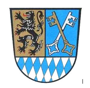 Die offizielle Beschreibung lautet: "Über Schildfuß mit den bayerischen Rauten gespalten von Gold und Blau; vorne ein rot bewehrter schwarzer Löwe, hinten schräg gekreuzt ein goldener und ein silberner Schlüssel."