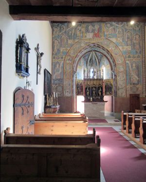 Der gotische Altar der Kapelle (um 1455) zeigt im Schrein im heutigen Zustand die heilige Maria, und seitlich die heilige Katharina auf Kaiser Maxentius stehend sowie die heilige Barbara auf ihrem Vater Dioscurus stehend. Die Predella darunter ist erneut mit heiligen Frauen ausgestattet: in der Mitte die Heilige Anna selbdritt, umgeben von den heiligen Elisabeth und Kunigunde einerseits und Maria Magdalena und Helena anderseits.