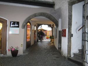 Vom Beginn der Getreidegasse bis fast zum Hotel Goldener Hirsch befinden sich mehrere, teils sehr bekannte Durchhäuser.