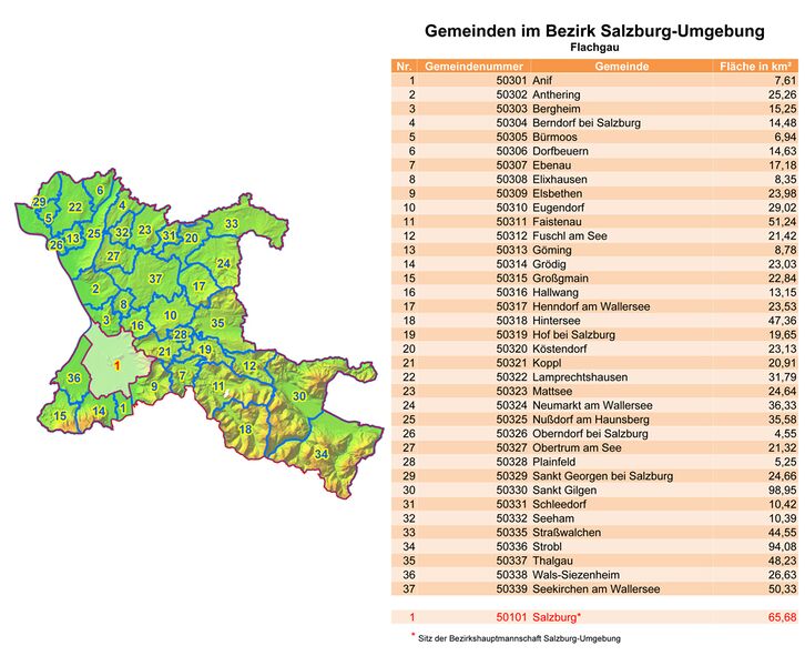 | Städte und Gemeinden im Flachgau | |
