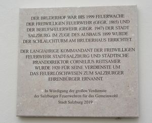 1866 schuf man in der Stadt Salzburg drei Feuerwachen: Im Bürgerspital St. Blasius (1. Compangnie), im Chiemseehof (2. Compagnie) und im Bruderhaushof (3. Compagnie). Diese blieb bis zur Inbetriebnahme der Feuerwache Schallmoos 1999 in Betrieb.