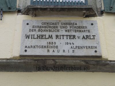 Gedenktafel für Wilhelm Ritter von Arlt in Rauris