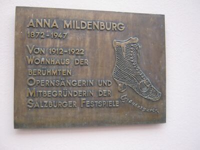 Gedenktafel für Anna Bahr-Mildenburg in der Arenbergstraße Nr. 8, am Schloss Arenberg