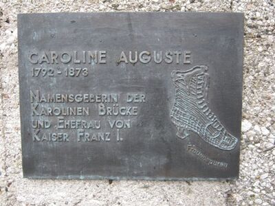 Gedenktafel für Karoline Auguste auf der Karolinenbrücke, auf der Seite des Justizgebäudes