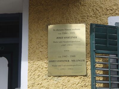 Erinnerungstafel an Vater und Sohn Josef Stoitzner an ihrem ehemaligen Wohnhaus in Bramberg am Wildkogel