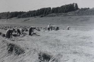 Die meisten Äcker waren damals kleiner als heute.Die gebräuchlichsten Getreidesorten waren und sind Gerste, Roggen, Weizen, Hafer und Mais. Viele Menschen waren für die Getreideernte nötig, denn fast alles wurde von Hand gemacht. Die gesamte Bauernfamilie, Knechte und Mägde mussten mithelfen. Galt es doch die Ernte vor dem nächsten Unwetter trocken in Sicherheit zu bringen.