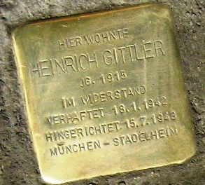 Zum Gedenken an Heinrich Gittler wurde am 2. Juli 2014 vor dem Haus Ulrike-Gschwandtner-Straße Nr. 5 ein Stolperstein verlegt.