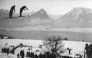 Schon 1922 wurde der erste Skisprung-Wettbewerb auf der neu erbauten Schanze in der Rackenroith abgehalten, welches Sprünge bis 30 m erlaubte. Franz Ramsauer sprang zur Begeisterung aller 37 m auf seiner Heimschanze und schrieb damit Skisportgeschichte. Er galt schon damals als ein Weltklassesportler der Zukunft. Mit seinen Doppelsprüngen (siehe Bild) wurde er gefeiert. Auf Grund seines Talentes und seiner konditionellen Stärke hatte er große Erfolge auch im Ausland und wurde "Dreifacher Österreichmeister im Skisprung".