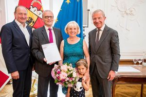 Josef Bruckmoser hat in seiner Arbeit nicht die schnelle Nachricht, sondern die Wahrheit im Fokus. Er hat es geschafft, sich mit den großen Fragen wie Glaube, Gesundheit und Wissenschaft zu beschäftigen, so Landeshauptmann Wilfried Haslauer junior bei der Verleihung in der Residenz.
