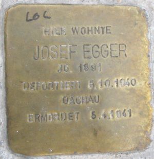 Zum Andenken an Josef Egger wurde am 19. April 2013 am Meierhofweg Nr. 13 ein Stolperstein verlegt.