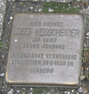 Josef Wegscheider verweigerte mit Johann Pichler am Beginn des Zweiten Weltkriegs den Wehrdienst. Die beiden wurden vom Kriegsgericht des Wehrkreises XVIII in Salzburg zum Tode verurteilt und am 26. September 1939 auf dem Militärschießstand in Glanegg hingerichtet. Sie waren die ersten Opfer der Zeugen Jehovas im nationalsozialistischen Salzburg.