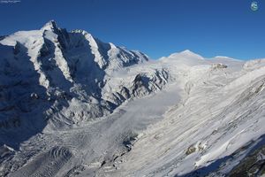 Links der Großglockners, davor die Pasterze, beides befindet sich auf Kärntner Gebiet