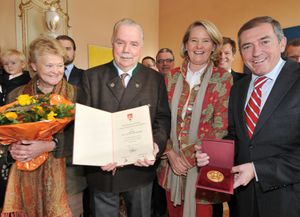 Dezember 2009: Outi und Landolf Revertera-Salandra, Landesrätin Doraja Eberle und Bürgermeister Heinz Schaden bei der bei der Überreichung des Stadtsiegels in Gold.