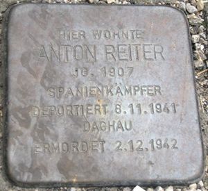 Im Haus Mühlstraße Nr. 1 war Anton Reiter wohnhaft, für ihn wurde am Straßenbeginn ein Stolperstein verlegt.
