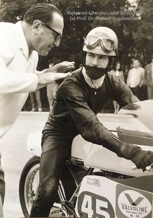 Bis 1969 fuhr er eine 350-cm³-Aermacchi-Rennmaschine