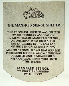 Zwei Tage, nachdem Manfred Stengl auf der Insel Man tödlich verunglückt war, kam Helmut Krackowizer, wie jedes Jahr, zur Tourist Trophy als Besucher. Manfred war wie sein Vater Fritz, ein guter Freund von Helmut Krackowizer. Krackowizer besuchte die Unglücksstelle. Neben der Unglücksstelle ließen dann die Schwester von Manfred, Hannelore Salachner-Stengl und Freude des Verunglückten einen sogenannten Shelter (Häuschen, heute bei den TT-Rennen als Streckenpostenhäuschen genutzt) errichten, in dem sich eine Erinnerungstafel befindet (siehe Bild rechts).