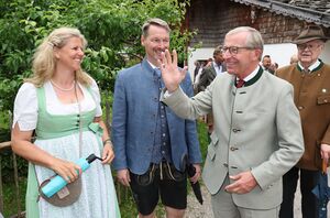 40 Jahre Salzburger Freilichtmuseum, Feier am 9. Juni 2024, Landeshauptmann Wilfried Haslauer junior mit Martin Panzer und dessen Gattin.