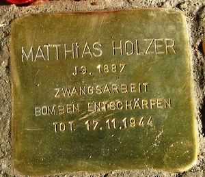 Zum Andenken an Matthias Holzer wurde am 3. Juli 2014 am Max-Ott-Platz Nr. 3 ein Stolperstein verlegt.