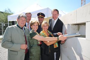 Der Grundstein für den Neubau der Justizanstalt Salzburg wurde am Mittwoch, 4. September 2013, in Puch-Urstein gelegt. "In einem Rechtsstaat sind Justizvollzugsanstalten eine notwendige Einrichtung. Die Standortentscheidung ist für die Politik immer im Spannungsverhältnis zwischen den angemessenen und berechtigten Bedürfnissen der Inhaftierten, guten Arbeitsplatzverhältnissen für die Justizbediensteten und dem Sicherheitsbedürfnis der Bevölkerung zu treffen", betonte Landtagspräsidentin Dr. Brigitta Pallauf bei der heutigen Grundsteinlegung im Beisein von Justizministerin Dr. Beatrix Karl, Oberst Dietmar Knebel, Leiter der Justizanstalt Salzburg, und Puchs Bürgermeister Helmut Klose.