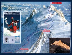 - 1981 Skiabfahrt Manaslu, 8 156 m ü. A., (Gurkha Himal, Himalaya, Nepal)