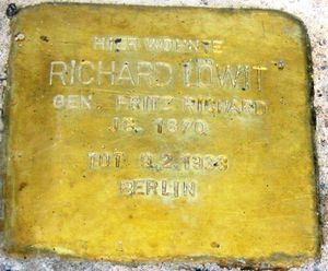 Richard Löwit, Künstlername Fritz Richard (* 6. Jänner 1870 in Chotebor, Böhmen; † 9. Februar 1933, in Berlin ermordet) war ein aus Salzburg deportiertes Opfer des Nationalsozialismus .