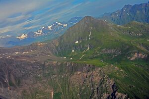 Bild 1: Blick über den Hohen Goldberg mit dem Radhaus zum Hocharn und rechts der Ritterkopf.