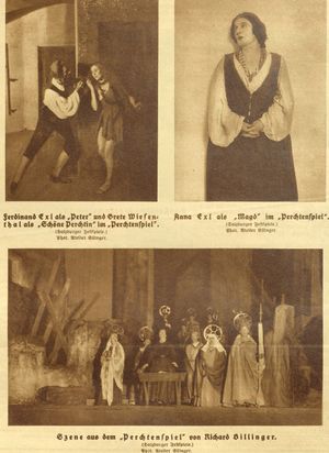 Das Perchtenspiel ist ein kühnes, tiefgründiges symbolisches Märchen aus der Gefühlswelt unserer Alpenbauern. Beileibe kein "Bauernstück"! Es ist fast ohne Vorbild; es sei denn, man erinnert sich der alten Volksbräuche und Volksschauspiele, die in der Überlieferung in manchen Gegenden noch lebendig sind.