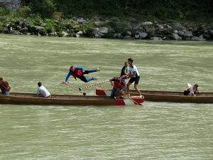 Dabei treten Mannschaften aus Oberndorf bei Salzburg und Laufen gegeneinander an. Die Stecher stehen mit Holzlanzen bewaffnet auf Zillen und versuchen den Gegner ins Wasser zu befördern. Der Verlierer muss an Land schwimmen und scheidet aus.