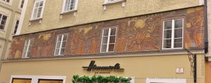 Ein Sgraffito von Karl Reisenbichler befindet sich an der Außenfassade des ehemaligen Kaufhauses Thalhammer, dem historischen Hauptmautamt, an der Ecke Rathausplatz 2 - Sigmund-Haffner-Gasse 2 in der Salzburger Altstadt.