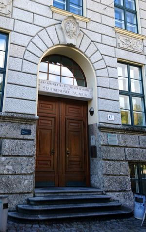 Bereits am 24. Februar 1876[2] – gegen Konkurrenz aus Linz und Innsbruck – wurde die Gewerbeschule mit kaiserlicher Bewilligung zur k.k. Staats-Gewerbeschule erhoben. Mit der Eröffnung der Gewerbeschule wurde auch eine "Abtheilung für Photographie und Reproductionsverfahren" eingerichtet - die weltweit erste staatliche Fachschule auf diesem Gebiet. Bis zu ihrer Übersiedlung 1886 nach Wien war sie Ausbildungsstätte für viele Fotografen, deren es auch etliche in Salzburg gab.