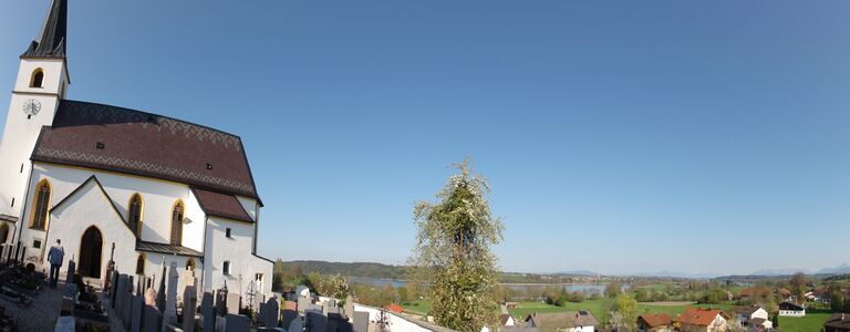 Nahe des Nordufers des Tachinger Sees steht die Wallfahrtskirche St. Coloman bei Tengling. Sie ist eine Station des St. Rupert Pilgerweges.
