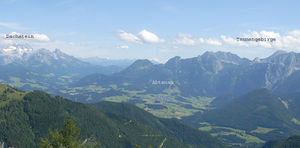 Von der Roßfeld-Panoramastraße hat der Besucher auf der einen Seite die Berchtesgadener Alpenlandschaft und auf der anderen Seite einen Einblick ins über 1000 m tiefer gelegene Salzachtal und über den nördlichen Tennengau.