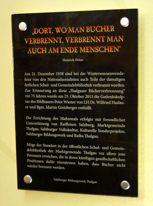 In Erinnerung daran wurde in der neuen Thalgauer Gemeindebiliothek am 25. OKtober 2013 von Landeshauptmann Dr. Wilfried Haslauer junior ein Mahnmal enthüllt.
