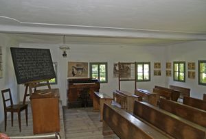 Im Jahr 1888 wurde dann ein Grundstück für einen allfälligen Schulbau erworben und ein Schulhaus mit drei Klassenzimmern und Lehrerwohnungen errichtet, das 1890 fertig gestellt wurde. 1898 wurde Koppelung der Lehrer- an die Mesnertätigkeit aufgelöst. Das alte Mesner- und Schulhaus wurde 1980 abgetragen und kann seit 1987 im Freilichtmuseum in Großgmain besucht werden, wo es im Zustand von ca. 1860 wieder aufgebaut wurde.