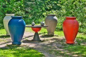 | 1 | Heinrich Brummack: Vasen, 1998, Gusseisen, Granit, Aluminiumguss, Sandstein, je 138 cm hoch |