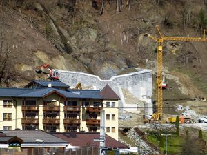 Lawinenschutzbauten über Bad Gastein, Zoomaufnahme vom Stubnerkogel