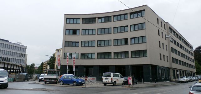Links das Gebäude des Wirtschaftsförderungsinstituts und das Gebäude der Wirtschaftskammer.