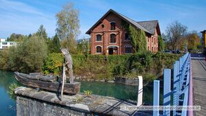 Der Ziegelstadel mit der Kühbrücke in der Kleinen Salzach.