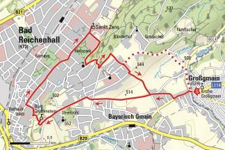Gehzeit: 2 Std./90 Hm/6,6 km. Karte: f & b WK 391 od. WDK 5. Charakter: einfache Wanderung auf Zufahrtstraßen und Waldwegen, die in die Kulturgeschichte von Bad Reichenhall eintaucht.