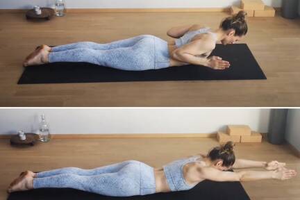Auch hier wird es im zweiten Durchgang unserer Fitnessreihe etwas anspruchsvoller. In Bauchlage den Oberkörper anheben und seitwärts drehen. Marissa Jöbstl auf Instagram